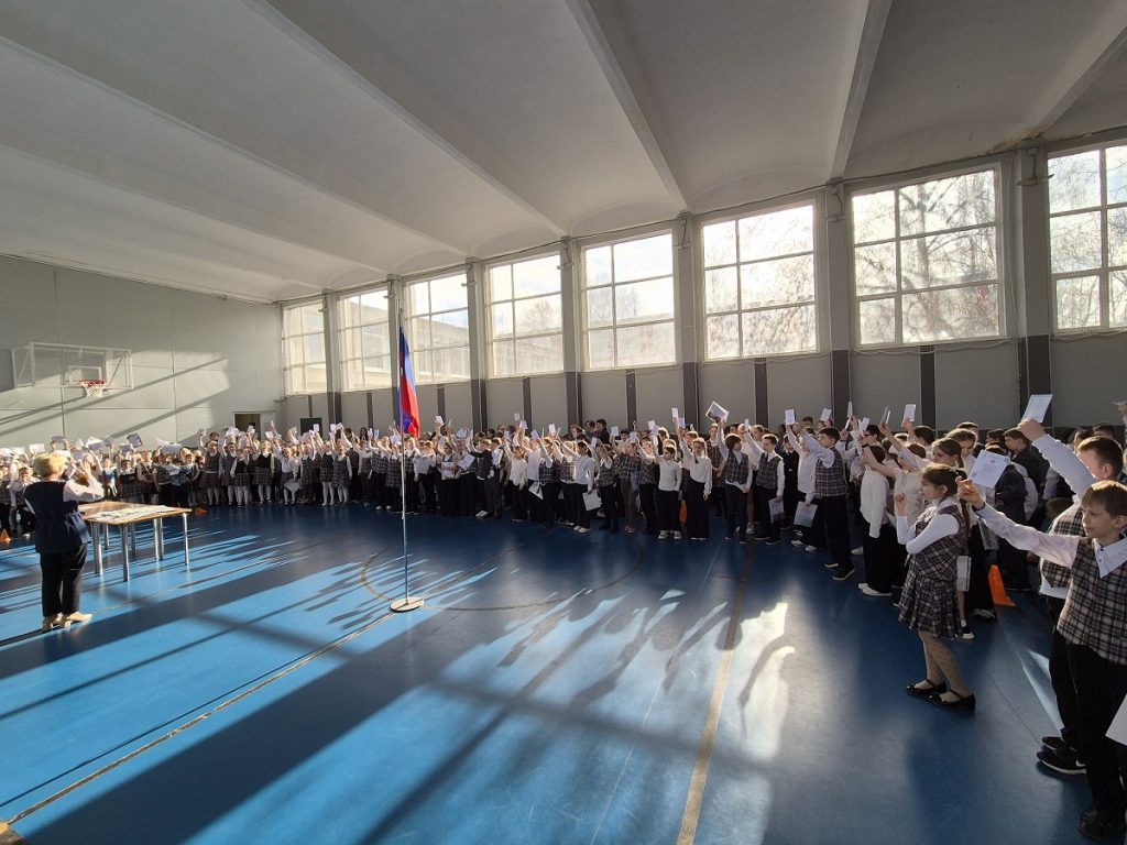 6 апреля учебный день в нашей школе начался с поднятия флага и исполнения гимна России.